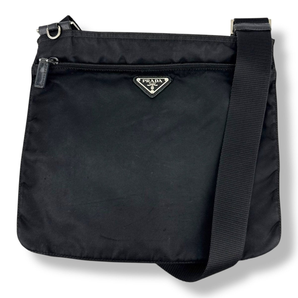 Prada Plaque Logo Black Nylon Messenger Crossbody Bag - Lux Central