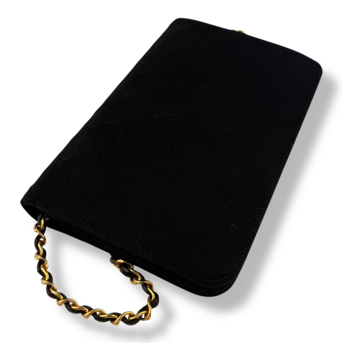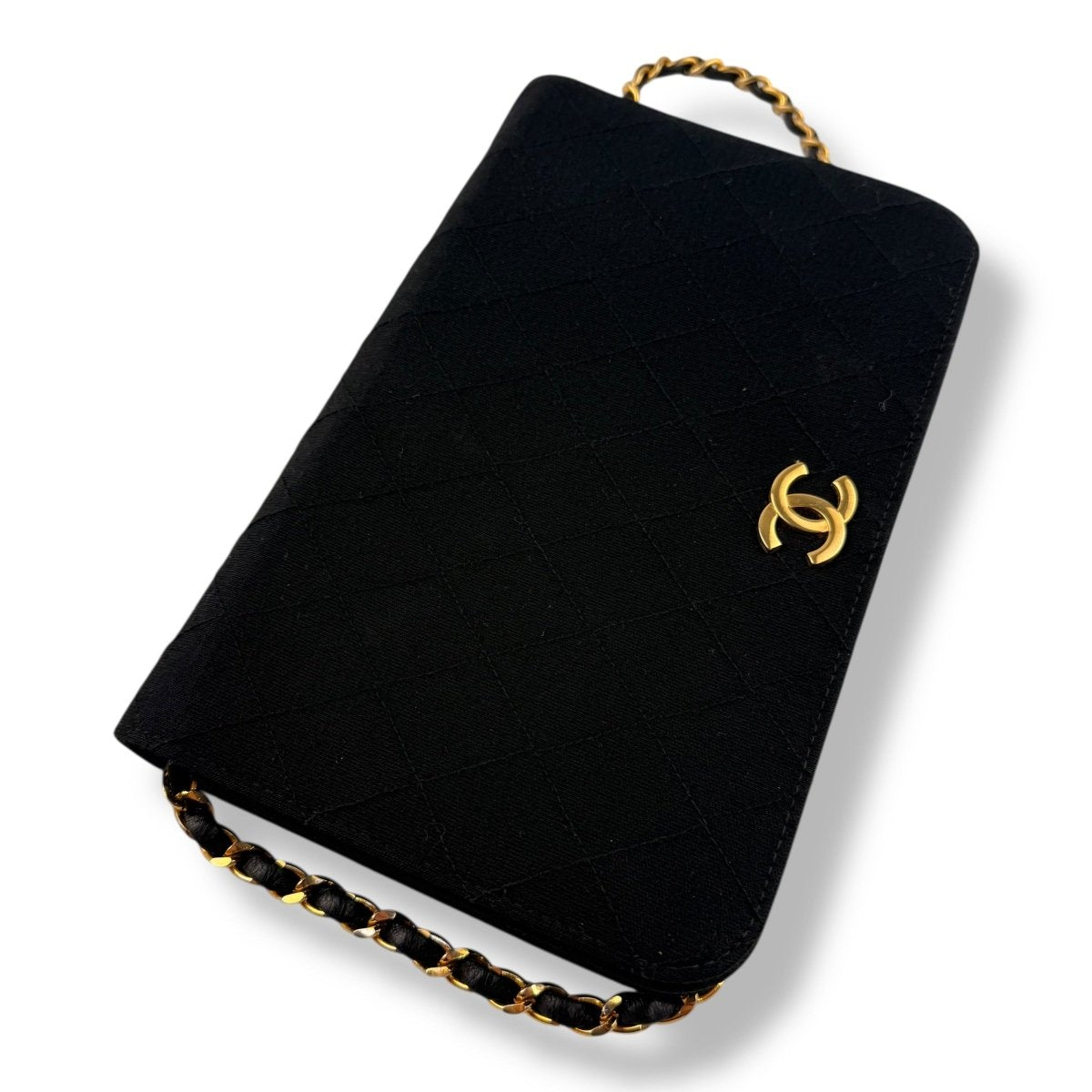 Chanel CC Black Push Lock Single Flap Quilted Cotton Shoulder Handbag - Lux Central