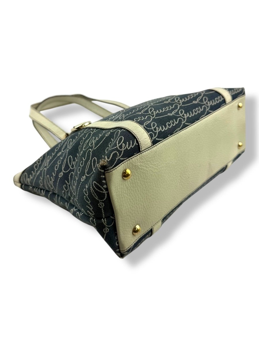Gucci Abbey GG Navy/Cream Canvas D-Ring Tote Handbag