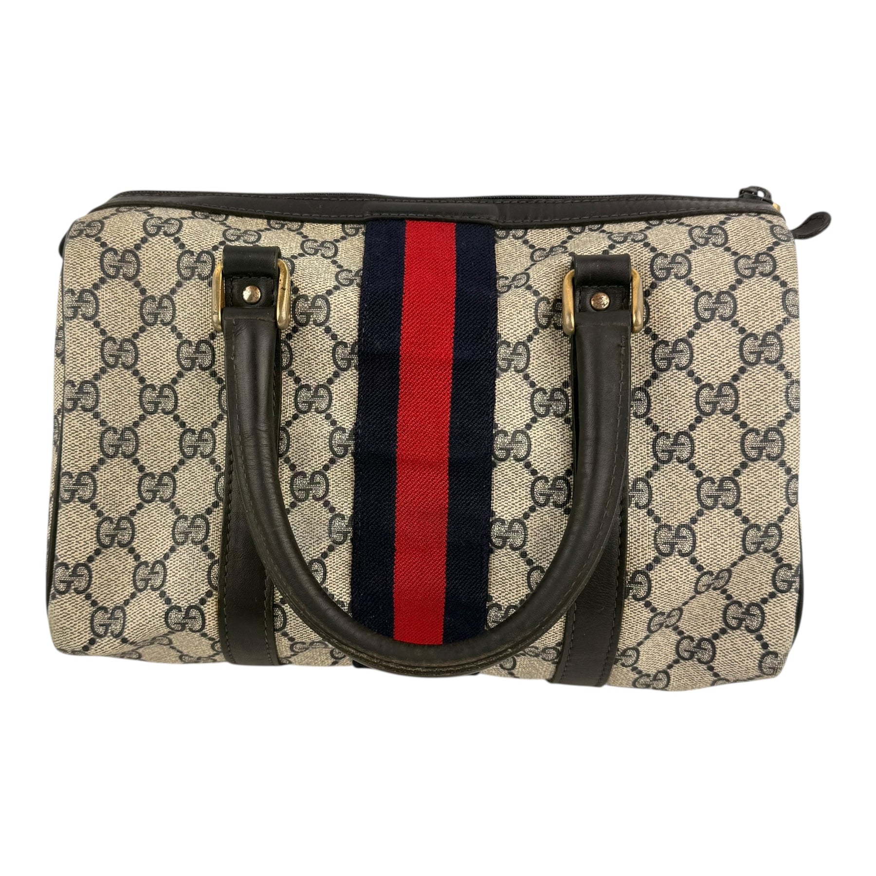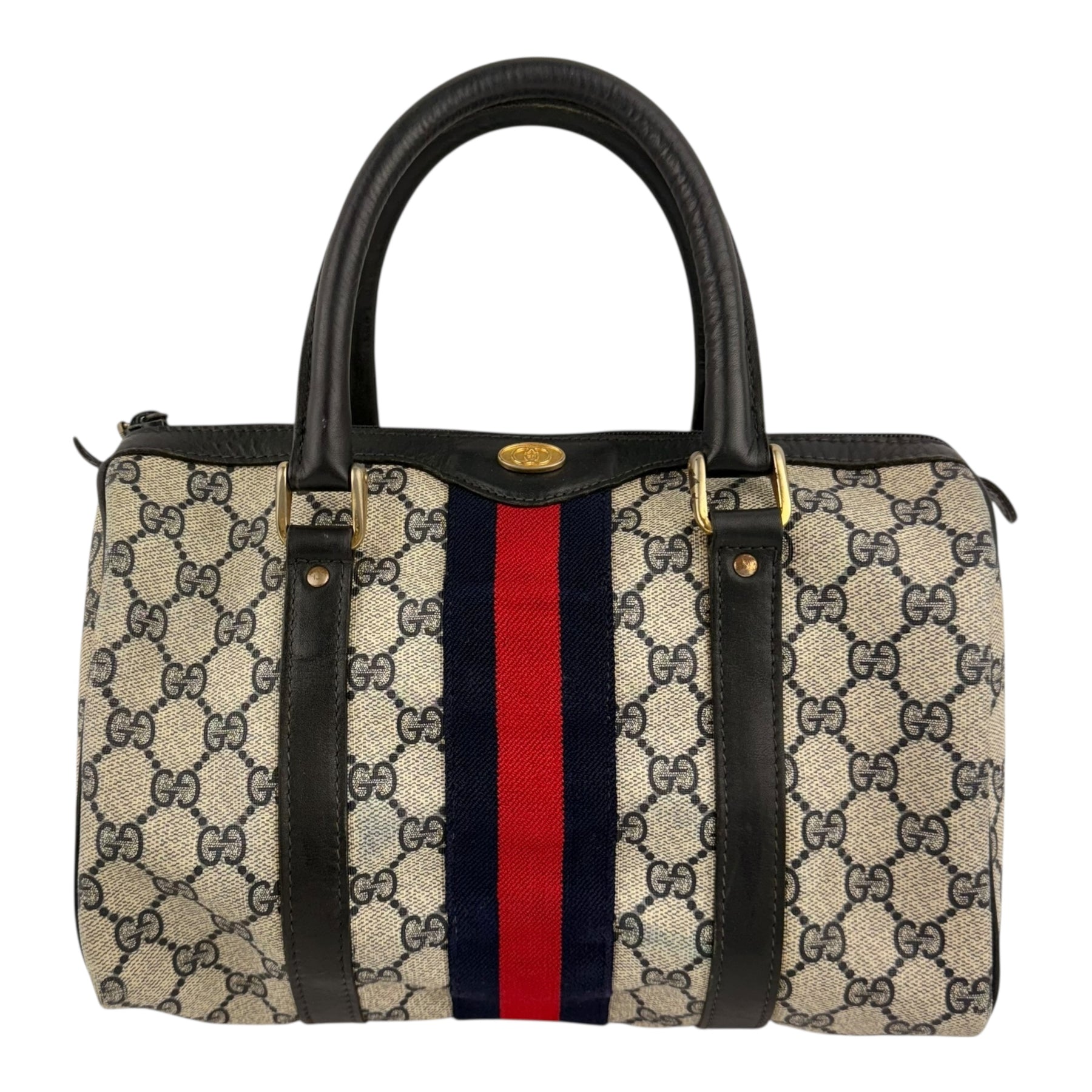 Gucci Beige/Navy GG Monogram Sherry Line Boston Canvas Bag