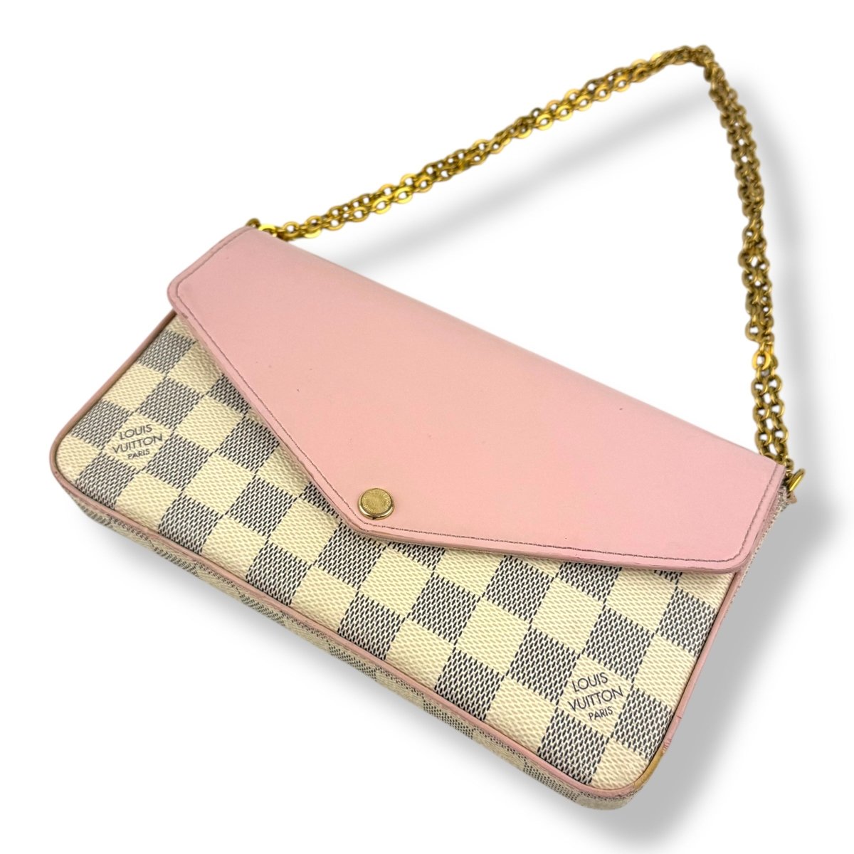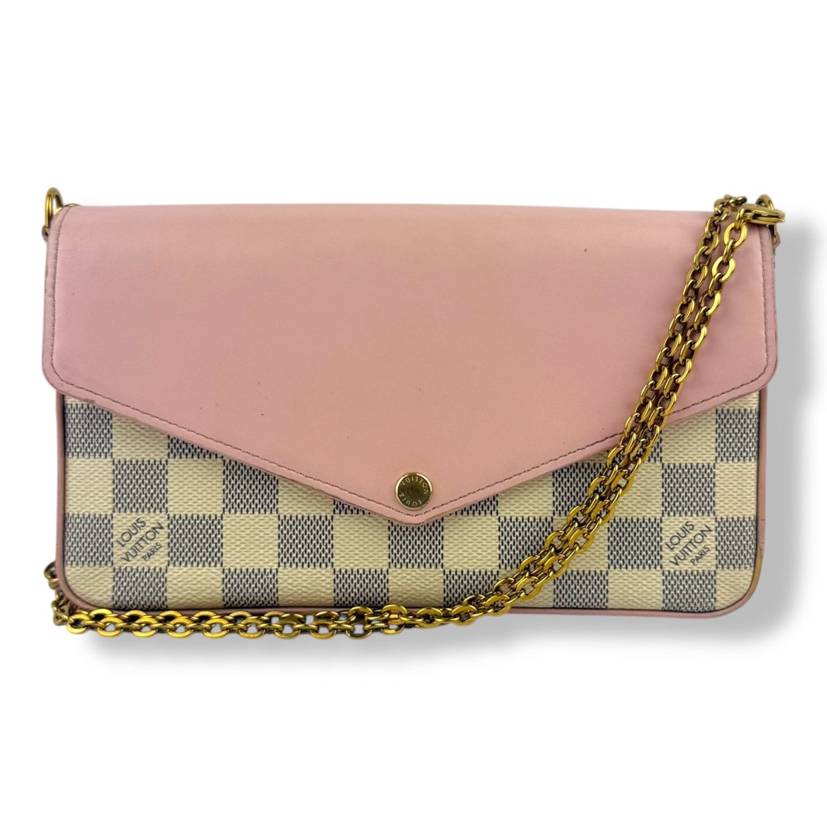 Louis Vuitton Felicie Pochette Damier Azur (eu de rose leather flap) Handbag - Lux Central
