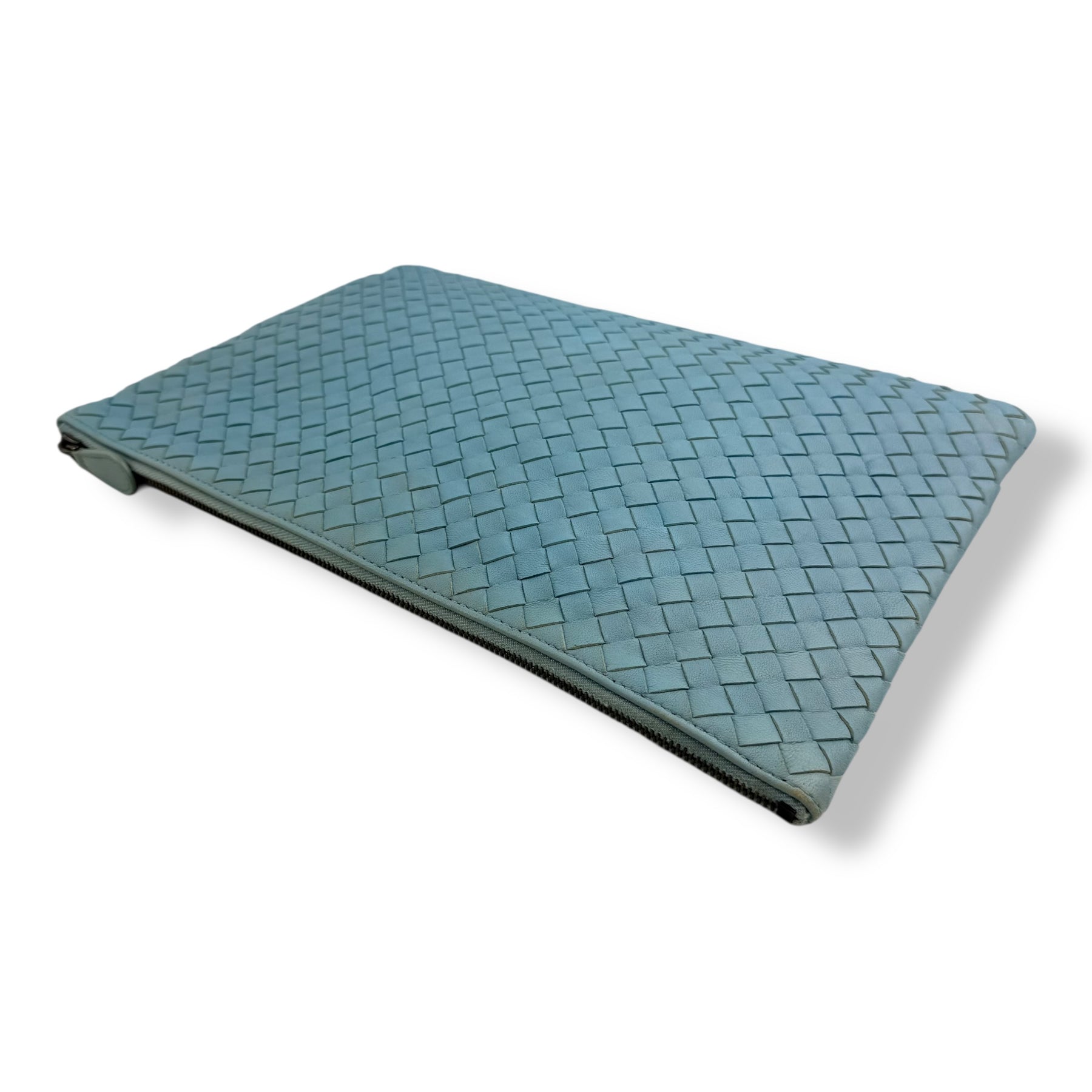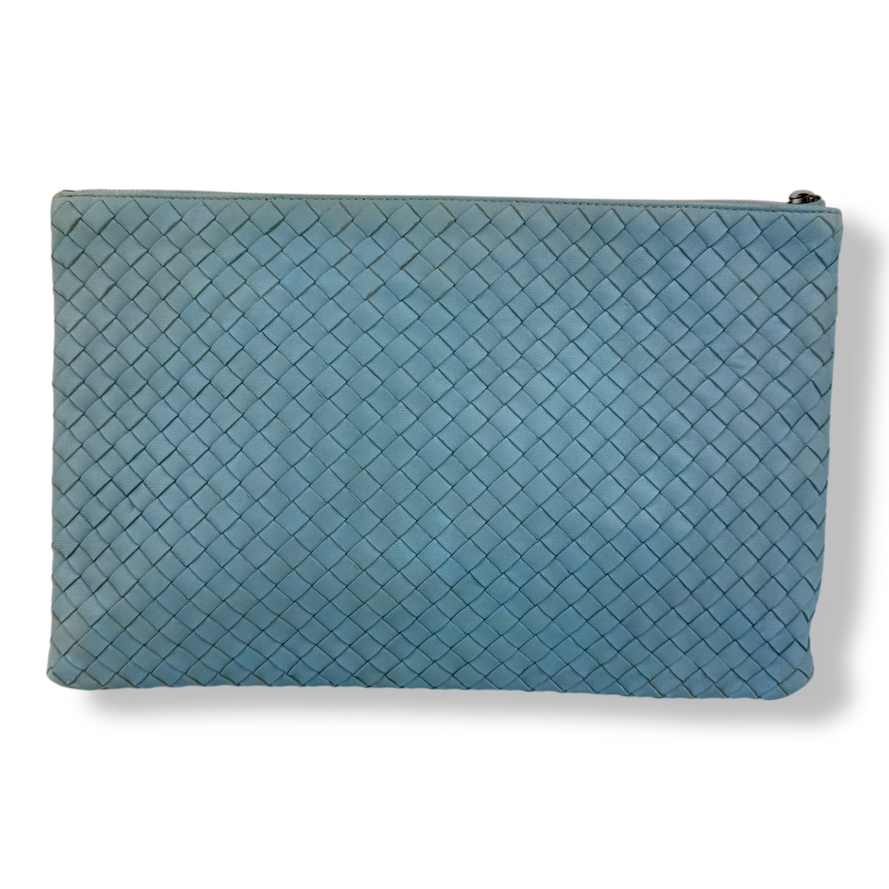 Bottega Veneta Calfskin Blue Leather Clutch Pouch
