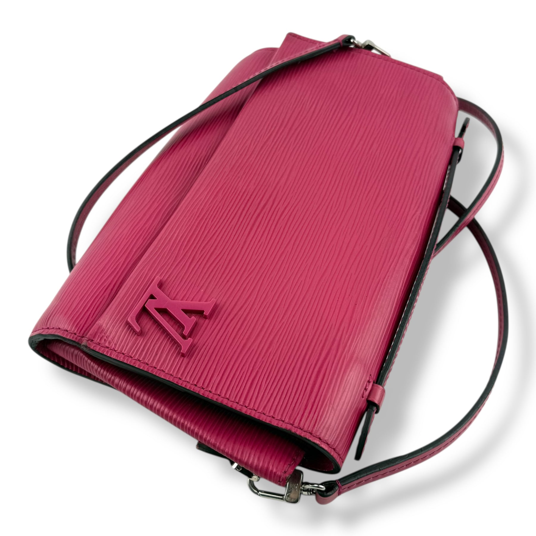 This Louis Vuitton Cluny handbag is crafted from durable Epi leather in a striking hot pink shade. Featuring a structured silhouette, top handle, and secure front flap closure, it’s a bold yet timeless piece that adds a pop of colour to any outfit.