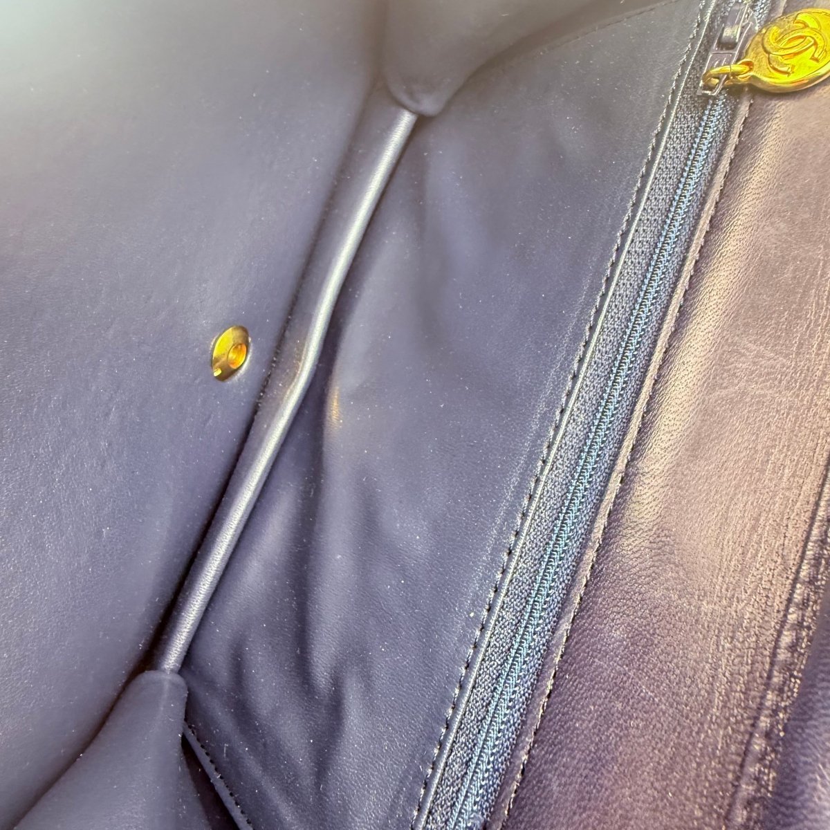 Chanel CC Navy Push Lock Single Flap Vintage Shoulder Handbag