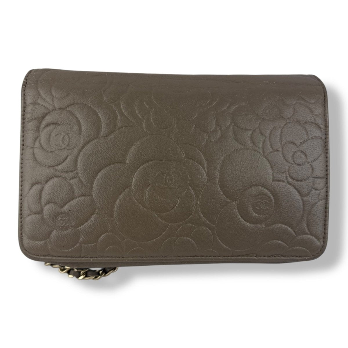 CHANEL Lambskin Quilted Camelia Wallet On Chain WOC Beige Handbag - Lux Central