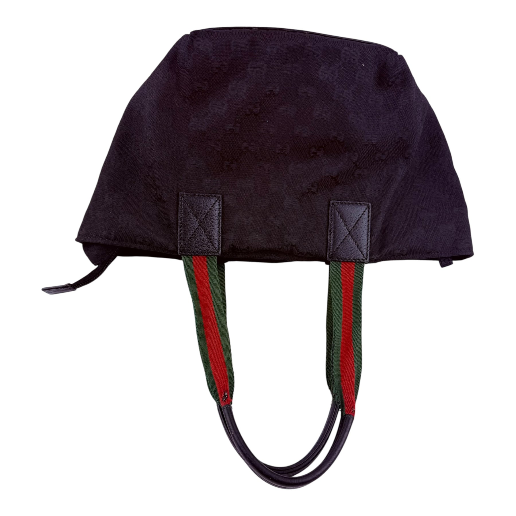 Classic Gucci heritage meets bold colour contrast in this GG Monogram Black Tote Handbag.