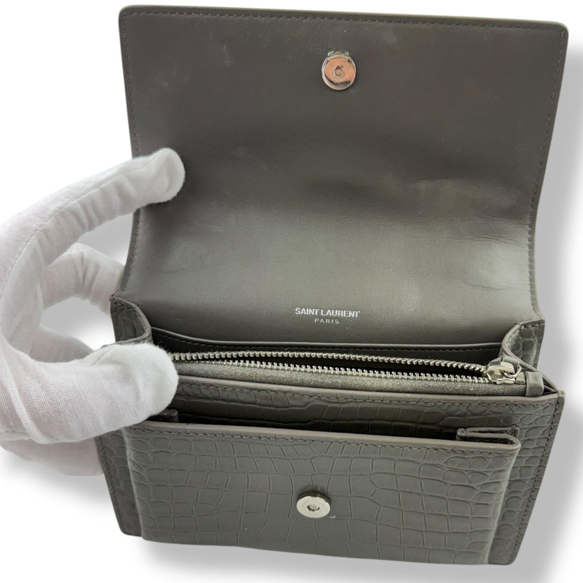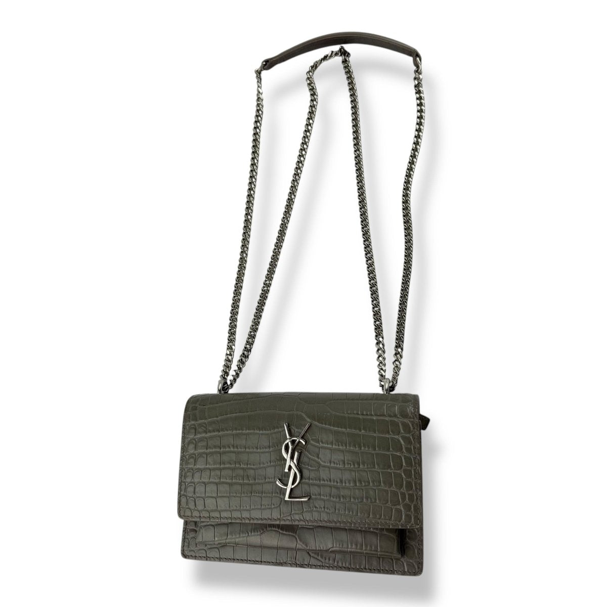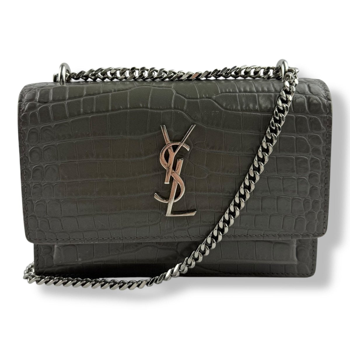 Saint Laurent Grey Croc Embossed Leather Mini Sunset Chain Bag - Lux Central