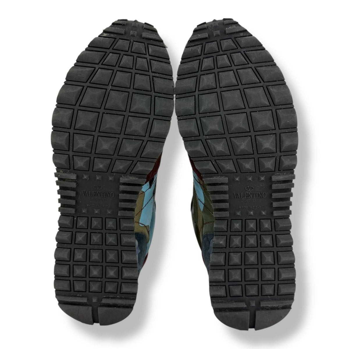 The Valentino Rockrunner Sneakers offer a sophisticated take on the classic runner silhouette, blending luxury craftsmanship with modern design. Known for their distinctive camouflage print and signature rockstud detailing, these sneakers are a perfect choice for those seeking a bold yet refined look. Crafted from premium materials, including leather, suede and mesh, Rockrunners deliver both style and comfort.